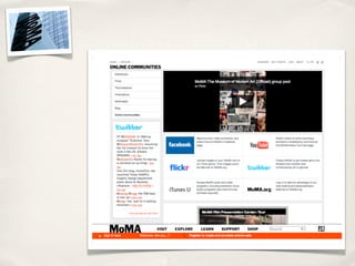 The document details a seminar discussing the impact of digital convergence on museums, emphasizing the need to understand audience, value, and provide engaging experiences. It showcases examples of successful digital initiatives from various museums and promotes the effective use of social media and technology for outreach and engagement. The speakers encourage decisiveness in serving community needs and adapting to the rapidly changing digital landscape.