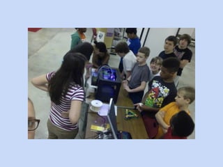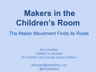 The document discusses the integration of maker spaces within libraries and emphasizes the importance of open-ended activities and community partnerships. Presenters highlight the role of libraries in facilitating creative programs for children and teens, showcasing various activities that can be implemented. It also encourages libraries to recognize and support community needs to foster growth and collaboration.