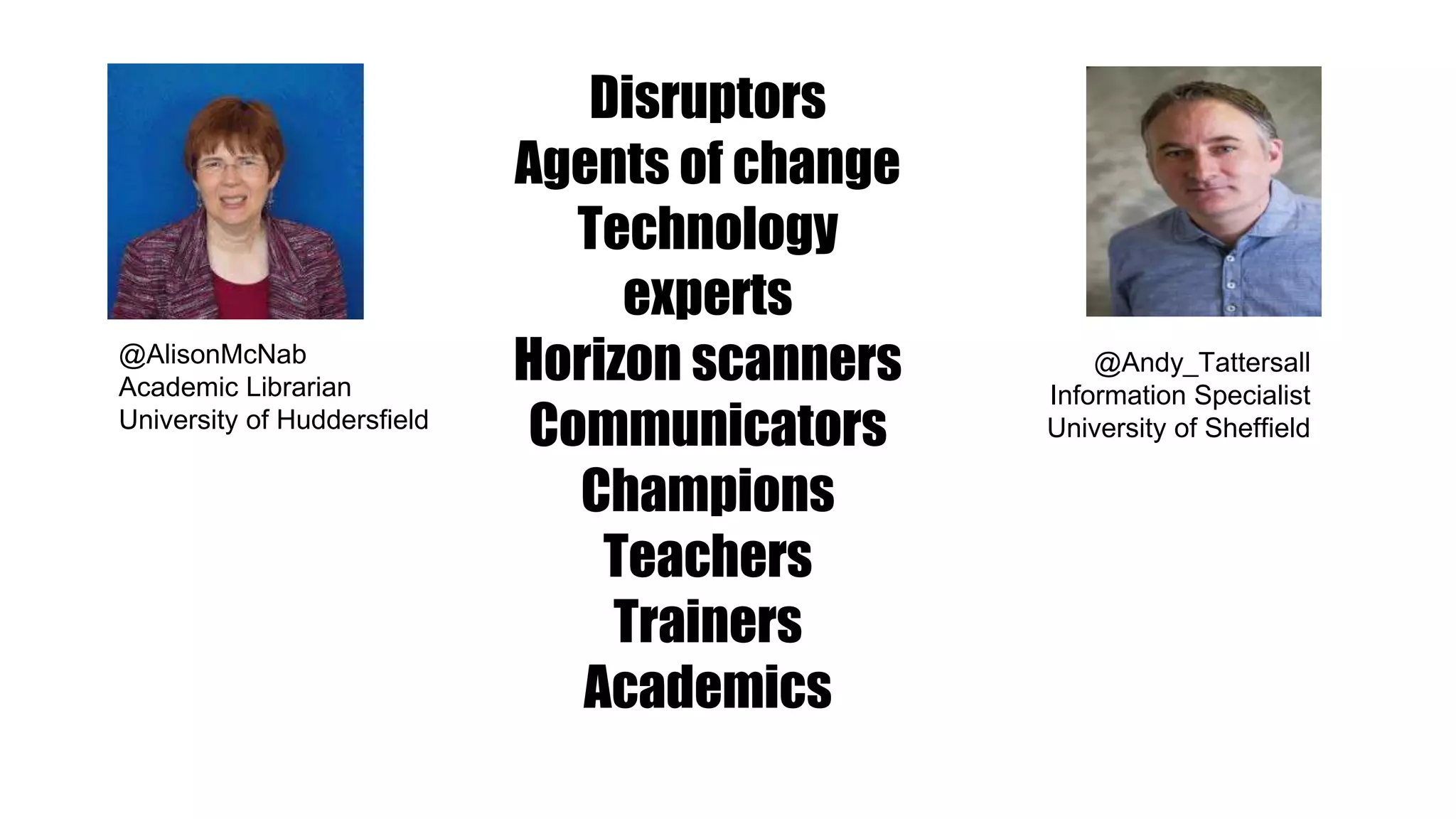 The document discusses the digital transformation of research support in academia, emphasizing the evolving role of librarians and research technologists in aiding researchers throughout the research lifecycle. It outlines key competencies needed for scholarly communication and research data management, while advocating for the creation of a dedicated role for 'research technologists' to facilitate this support. Various resources and frameworks are provided to enhance digital skills and identify the challenges faced within the research environment.