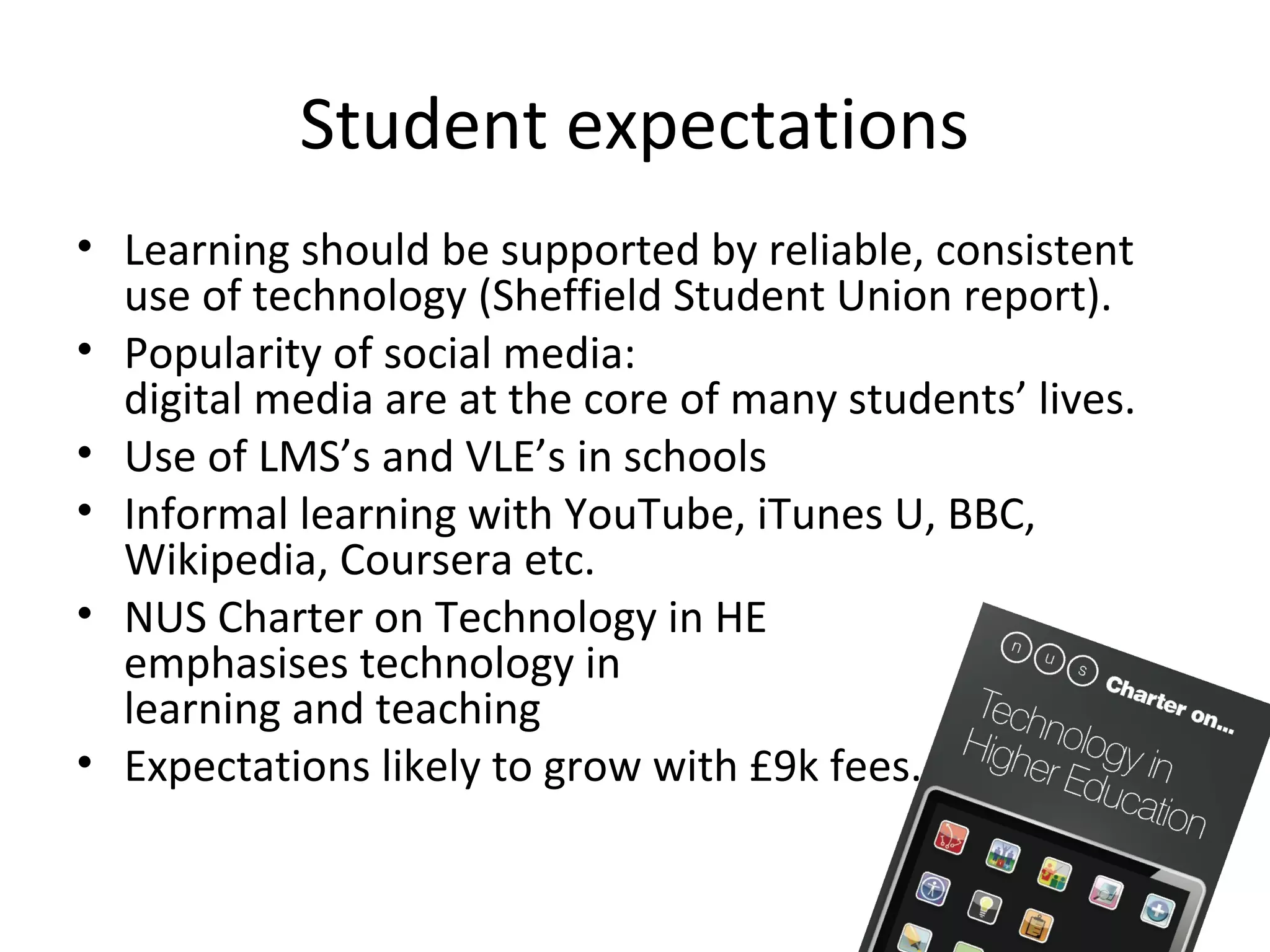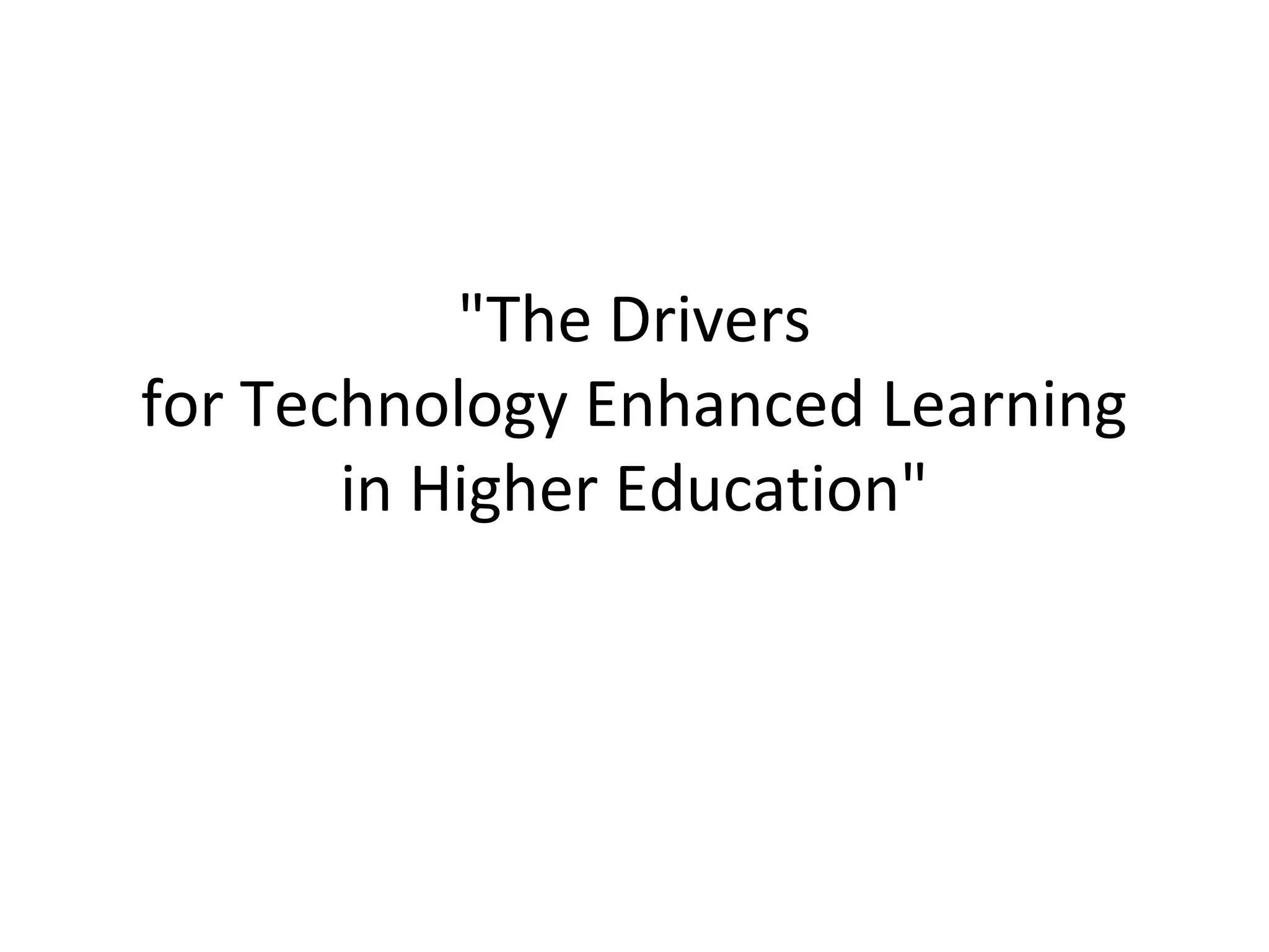 The document discusses several key drivers for technology enhanced learning in higher education, including student expectations for reliable technology use, the importance of developing digital literacy skills for employability, the need for flexible delivery to accommodate diverse student needs, and opportunities for reuse, scalability, and international collaboration through digital resources and online learning.