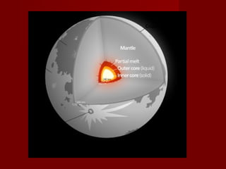 The Earth's only natural satellite is the Moon. It formed over 4 billion years ago, likely when a Mars-sized object collided with Earth. Samples retrieved from the Moon during the Apollo missions are virtually identical to Earth rocks, suggesting the Moon was formed from material ejected from Earth rather than from a separate impacting body. The Moon has no atmosphere or weathering and its surface includes dark basins called maria formed by ancient lava flows, light highlands, and impact craters and rays.