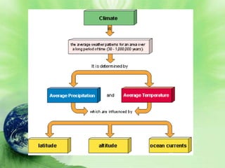 1. Biomes are defined as large regions with similar climates and ecological communities. The main biomes include tundra, taiga, temperate rainforest, temperate deciduous forest, grasslands, deserts, and tropical rainforests.