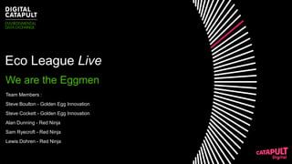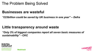The document outlines a proposal by a team called Eco League Live to address wastefulness in UK businesses, which could save £23 billion annually according to Defra. They suggest creating a league table to highlight companies' sustainability performance and recommend government legislation to enforce data transparency. The initiative seeks to engage businesses through employee incentives, partnerships, and innovative data reporting mechanisms.