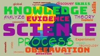 This document discusses key concepts in science education, including the definition of science, the scientific method, and qualities of effective science teachers. It defines science as a body of knowledge acquired through systematic processes of observation and experimentation. The scientific method is described as a set of steps including making observations, developing hypotheses, conducting experiments, analyzing data, and drawing conclusions. Finally, it notes that inspiring science teachers engage students through traits like creativity, stamina, involvement, and clear instruction.