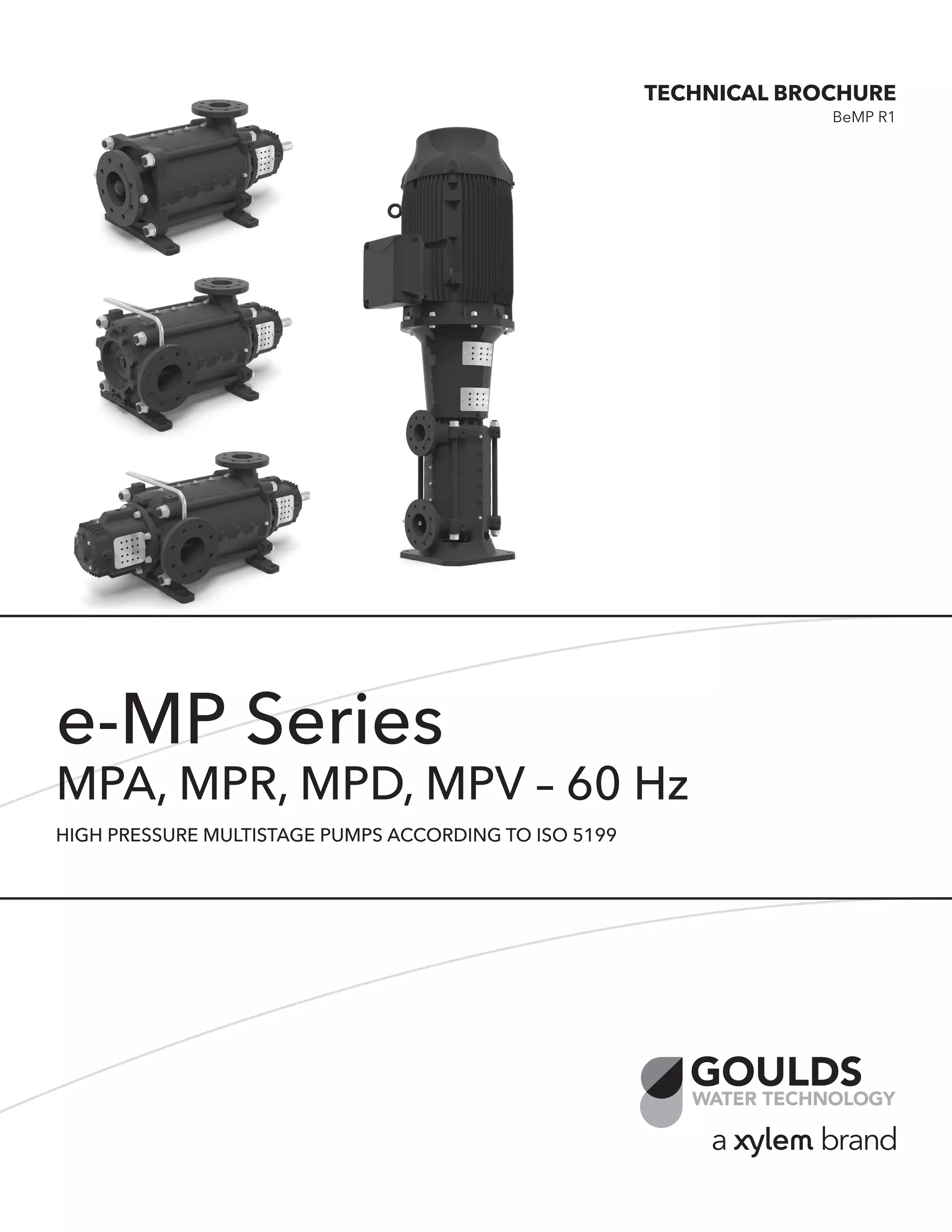 The e-mp series features high pressure multistage pumps designed according to ISO 5199 standards, suitable for various applications in industries such as oil and gas, power plants, mining, and agriculture. The pumps are characterized by their flexible configurations, hydraulic performance, and ability to handle a wide range of fluids, including hot, grey, and seawater. Detailed technical specifications, including design versions, operating data, and pumpable fluids, are provided to assist in project management and selection.