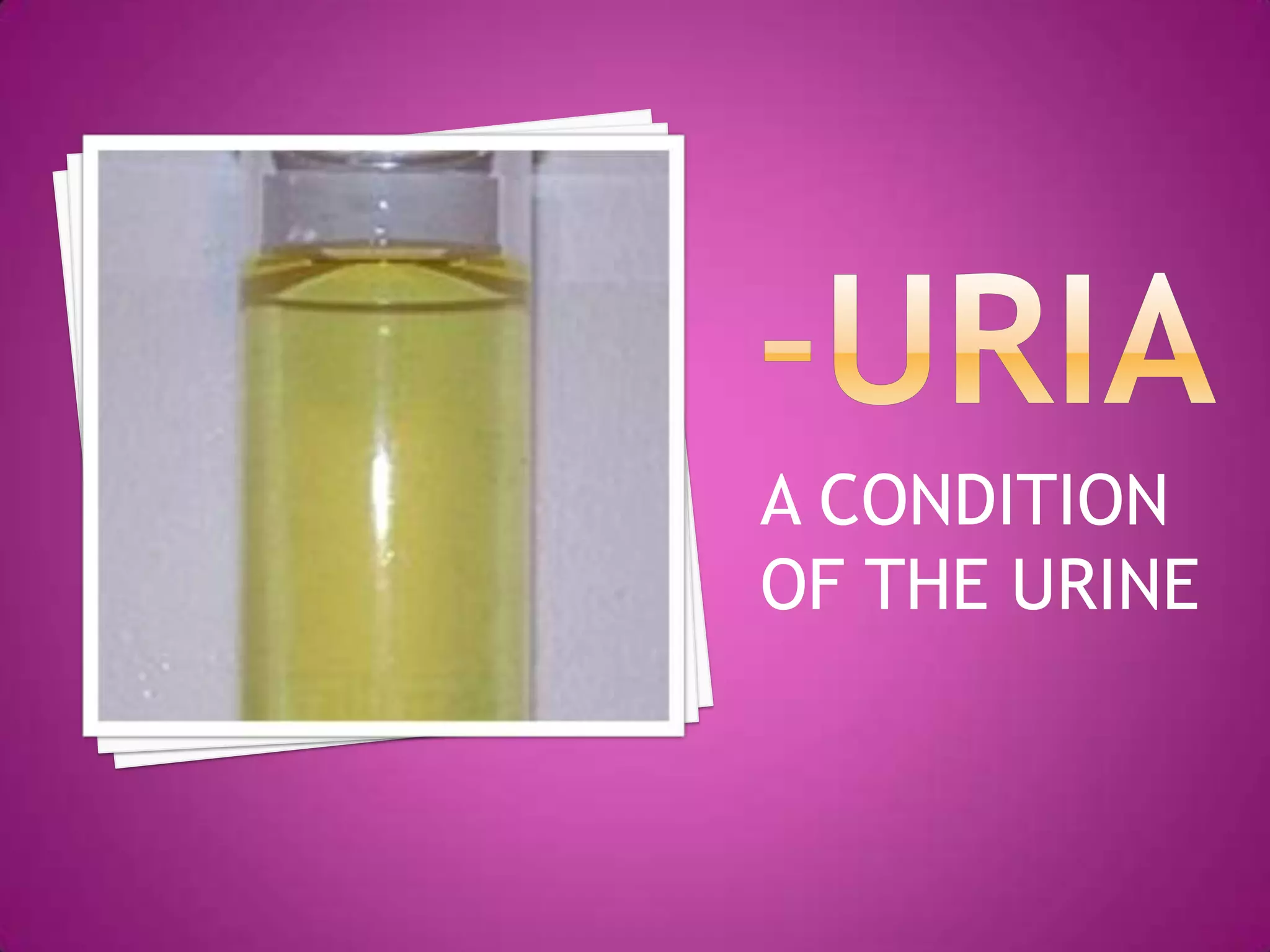 The document discusses various medical terms related to the endocrine system. It defines the suffixes -uria and -dipsia, which refer to conditions of the urine and thirst, respectively. It provides the terms polyuria and polydipsia, describing polyuria as a condition where more than 2.5 liters of urine is produced daily and polydipsia as excessive thirst of over 2 liters, with both often being signs of diabetes. References for the information are a medical terminology textbook and Wikipedia.