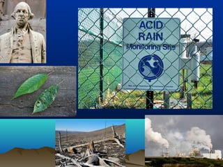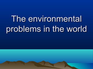 The document discusses several major environmental problems: global deforestation is reducing forests and damaging land, acid rain from pollution is harming forests, soils and buildings, species extinction is occurring due to habitat loss and poaching, and ozone depletion is increasing UV radiation and harming human health, plants and animals. Deforestation has negative effects including reducing habitats and absorbing greenhouse gases. Acid rain damages soils, forests and structures. Species extinction is driven by habitat loss, poaching, wildlife trade and climate change. Ozone depletion causes increased UV radiation which harms humans, plants and animals.