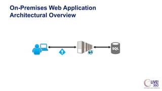 The document outlines key elements of building cloud-based web applications using Azure, covering features, setup processes, and disadvantages of various components like SQL Database, Web Apps, Blob Storage, Redis Cache, Active Directory, and Functions. It highlights the architectural overview for integrating these services, presenting scalability, performance, and management considerations. Additionally, it provides cost estimates for different service tiers and resources for further learning about Azure.