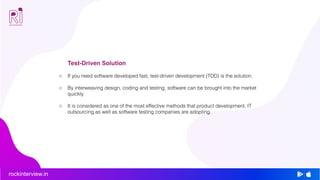 Test-driven development (TDD) is a software development process that emphasizes writing tests before code to ensure functionality aligns with user requirements. While TDD promotes speed and adaptability in smaller projects, it may struggle with large or complex systems, particularly legacy code. The approach can initially slow productivity but ultimately offers benefits like better code quality and fewer debugging issues.
