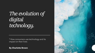 The document discusses the evolution of digital technology and the internet from its inception in 1983 to its current state, highlighting its impact on consumers' lives. It addresses how internet access has transformed from government researchers sharing information to billions of users conducting various activities online, including shopping and communications. Additionally, it notes the rise of smart technology and e-commerce, while also considering privacy concerns and changing consumer behaviors.