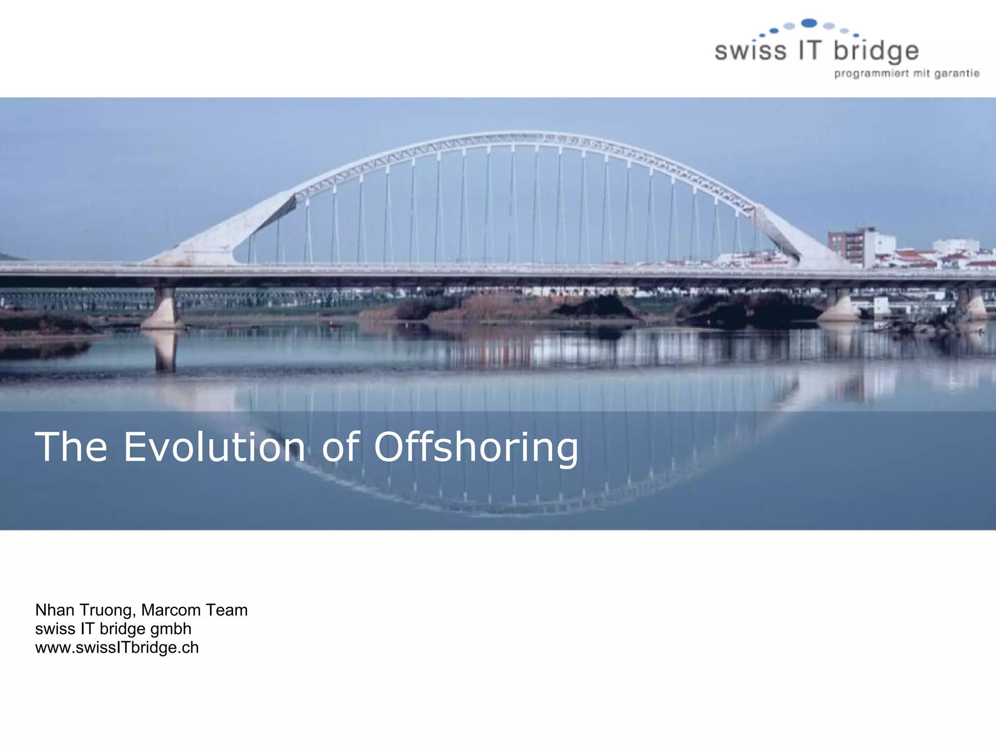 The document describes the evolution of offshoring models from Offshoring 1.0 to Offshoring 2.1. Offshoring 1.0 involved outsourcing software development overseas with predefined requirements and feedback after delivery. Offshoring 2.0 used agile methods with iterative development, in-process feedback, and responsiveness to changes. Offshoring 2.1 maintains all advantages of 2.0 while adding project control by staff from clients' cultural area, removing lingual and cultural barriers. The future of offshoring is presented as Offshoring 2.1.