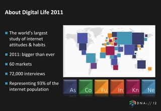 This document discusses trends in online consumer behavior in Australia based on a large study of internet usage. It finds that Australians are spending more time online, especially on mobile devices and tablets. More time is being spent shopping and using social media online, while personal email usage is declining. Government websites are frequently accessed for information. Australians are increasingly interacting with brands and commenting online about purchases. The document advocates for governments to provide both basic and advanced online services tailored to different audience levels of digital sophistication.