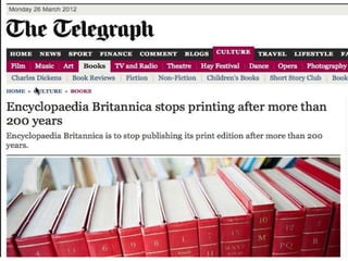 The document traces the evolution of written communication from ancient Sumerian cuneiform to modern digital screens. It discusses the development of alphabets in Phoenicia and Greece and the later addition of punctuation and spaces between words. The document then examines technological changes like e-paper and the growth of the internet and social media. It raises issues around data privacy, copyright in a digital world, and how technology is changing readers, writers and the marketplace of ideas.