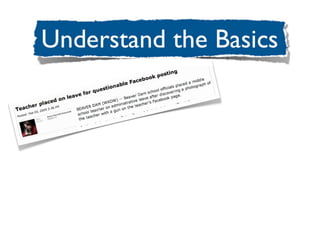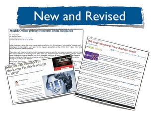 The document provides guidelines on managing privacy settings on social media, particularly focusing on Facebook. It outlines steps for controlling friend lists, tagging, account customization, and how to ensure that personal information is shared only with the intended audience. The emphasis is on maintaining privacy while interacting on social media platforms and making informed choices about what is shared publicly.