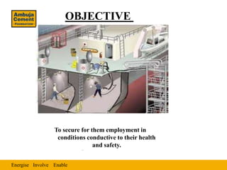 The Factory Act of 1948 aimed to protect workers employed in factories against industrial diseases and hazards. It imposed obligations on factory owners and operators to ensure workers' health, safety, and welfare. The Act applied to manufacturing facilities employing certain minimum numbers of workers. It addressed issues like cleanliness, ventilation, lighting, drinking water, safety of machinery, and regulated working hours and annual leave for workers.