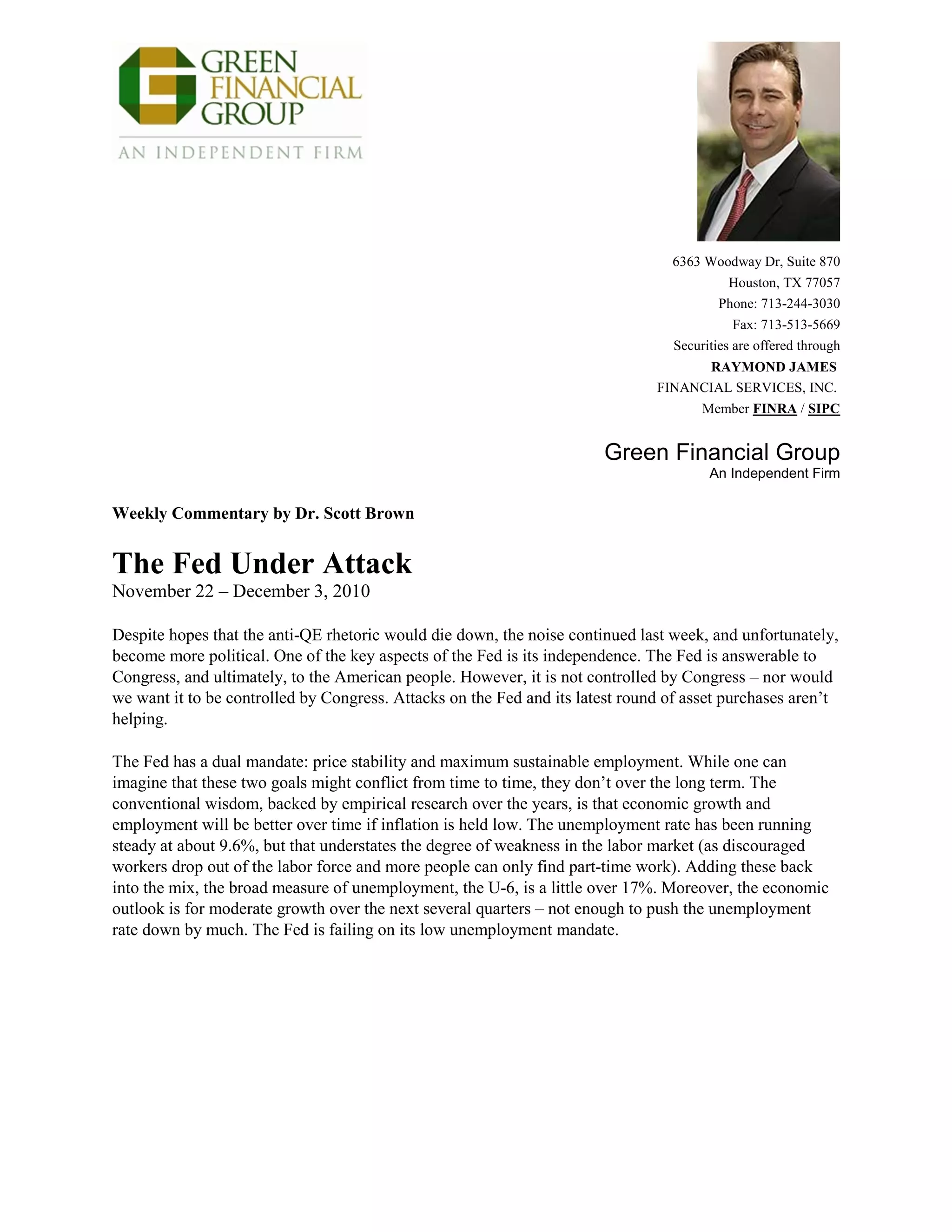 The commentary by Dr. Scott Brown discusses ongoing criticisms of the Federal Reserve's independence and its strategies, particularly regarding quantitative easing and its impact on the economy. It highlights concerns over low inflation, unemployment rates, and the importance of maintaining price stability while fulfilling dual mandates for economic growth and employment. The piece asserts that despite political pressures, the Fed's actions are essential for navigating a challenging economic landscape, emphasizing the need for clearer communication and public understanding.