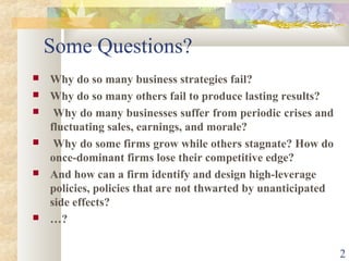 The document discusses Peter Senge's book "The Fifth Discipline" which argues that learning organizations require five core disciplines - systems thinking, personal mastery, mental models, shared vision, and team learning. It provides definitions and explanations of these disciplines, with a focus on systems thinking involving understanding organizational patterns and leveraging them, and personal mastery as continually expanding one's ability to achieve desired results through commitment to truth. The disciplines together can help organizations adapt to changing environments through improved learning.