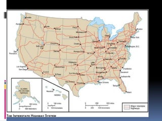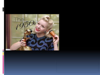 The document discusses the characteristics of life in the United States during the 1950s. It was a time of economic boom fueled by post-war prosperity. Suburban living became the norm as new highways and affordable housing developments like Levittown emerged. Television also rose to prominence during this period, influencing popular culture. However, tensions arose as new youth cultures like rock and roll music developed and rebelled against the conservative social values of the time.