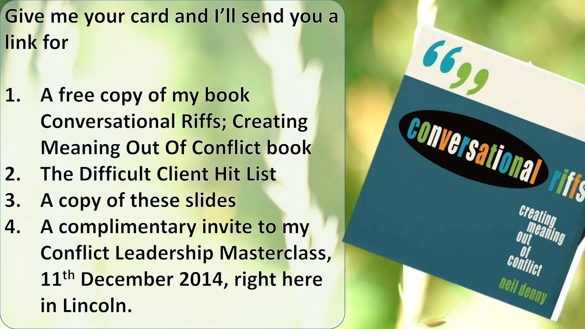 Neil Denny outlines the first three steps in dealing with difficult clients: change your position, speak up, and stop labeling clients. He emphasizes the importance of shifting from a defensive mindset to one of service, while understanding that clients desire to be delighted rather than viewed as difficult. Denny argues that there's no such thing as a difficult client, only those who are disappointed or mismatched with the service provided.