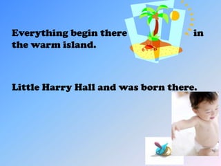 Harry was born on a warm island where it was always sunny and flowers bloomed year-round. When he was six, his parents took him to live in New York, where the weather was cold and snowy in the winter. The first time Harry saw snow, he was puzzled by the small white flakes falling from the sky. When it gathered on the ground, he discovered it was cold and turned to water. He asked his mother what it was called, and she told him it was snow. Ever since experiencing his first snowstorm, Harry has fond memories of playing in the snow and being pulled around on a new sled by his father.