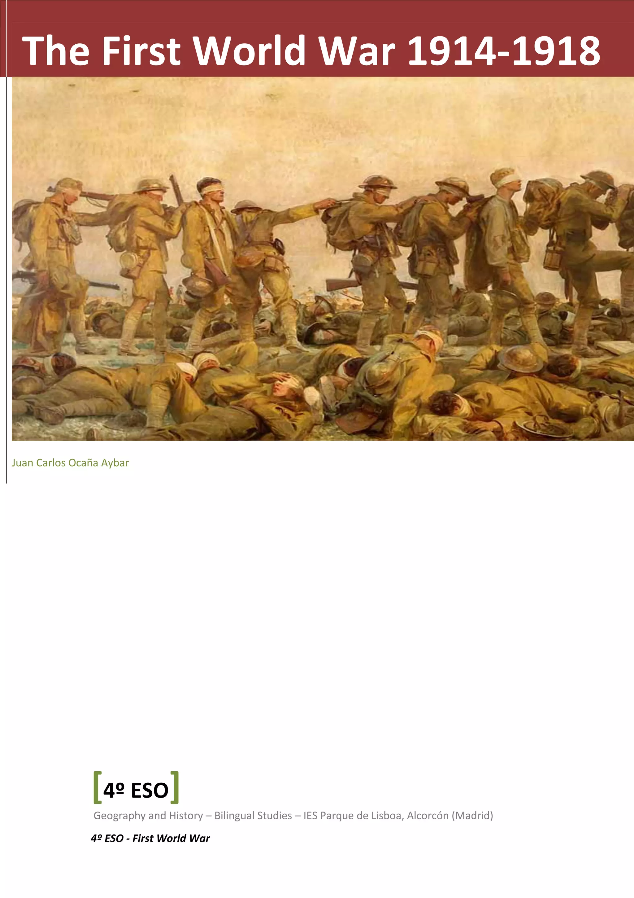 The document discusses the causes, progression, and implications of the First World War (1914-1918), detailing the initial perceptions of a quick victory and the reality of brutal trench warfare. Key factors include Germany's assertive expansionist policies, shifting alliances, and the assassination of Archduke Franz Ferdinand, which escalated regional tensions into a global conflict. The war ultimately involved major powers worldwide and led to devastating consequences, concluding in 1918 with the signing of an armistice.