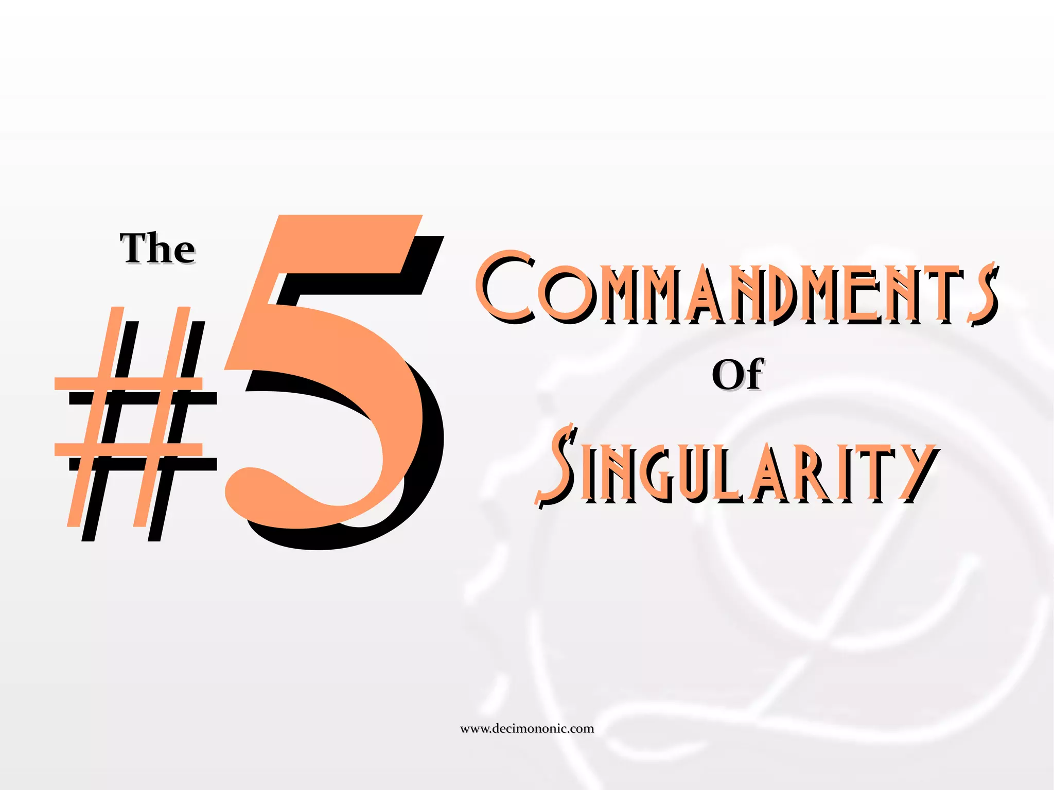 The document outlines 55 "commandments" or principles of singularity. It defines singularity as referring to a single person or thing and being exceptional or remarkable. The company's vision is to empower people through jewelry conceived as "reminders of singularity." The 55 principles emphasize that every person is unique and a global citizen, deep knowledge of history is important to build the future, mastery provides real value, and beauty can be found in unexpected places. The company invites the reader to join them in pioneering singularity.