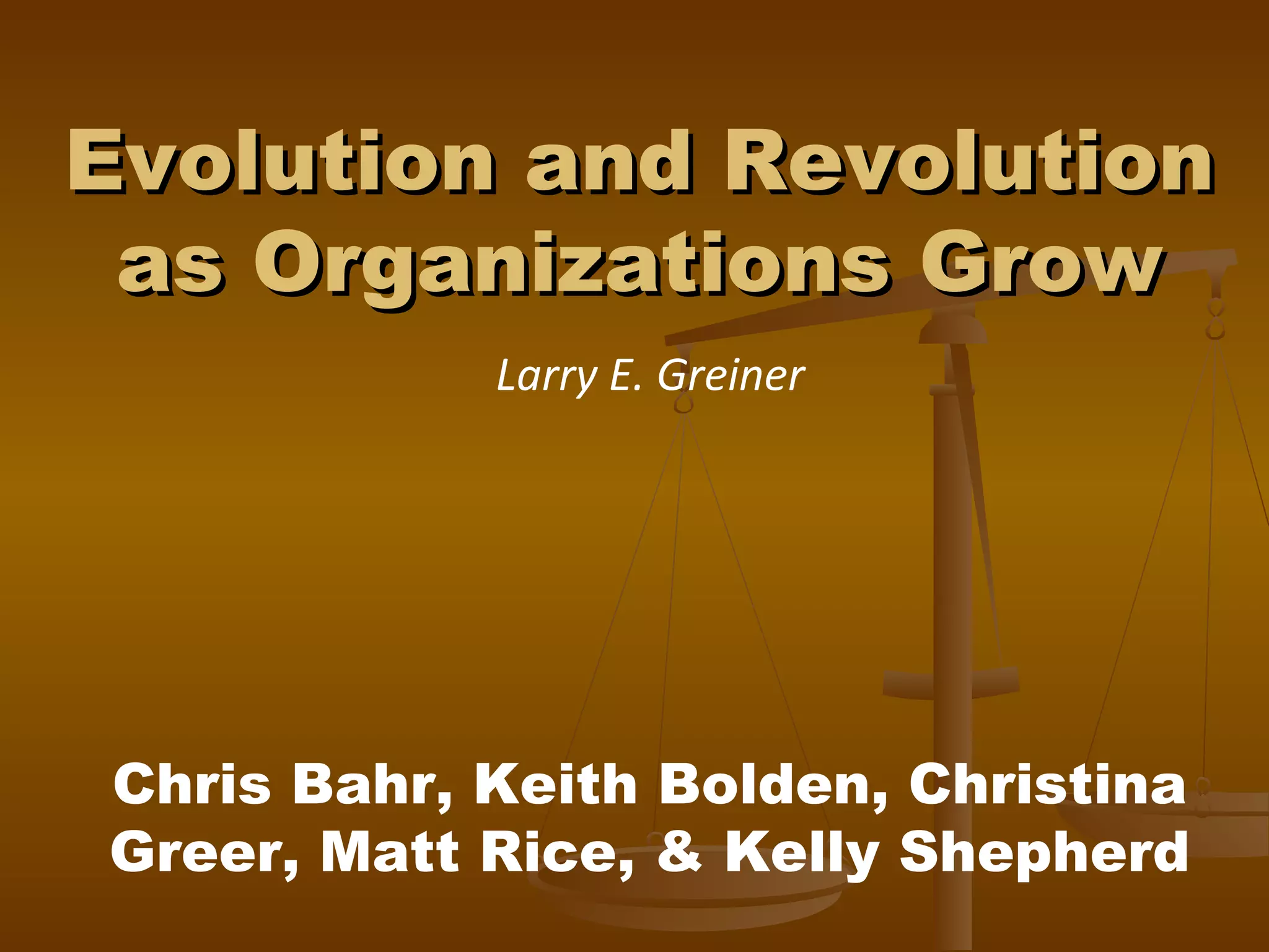 This document discusses Larry Greiner's model of organizational growth which identifies 5 phases of evolution that organizations progress through as they grow in size and age. Each phase is characterized by a different management style and is followed by a period of revolution or crisis as the previous management style is no longer effective. The 5 phases are creativity, direction, delegation, coordination, and collaboration. The document provides an example of how Costco grew through the collaboration phase and suggests applying Greiner's model to analyze where one's own organization currently sits in the phases and what management changes may be needed to address the next potential crisis.