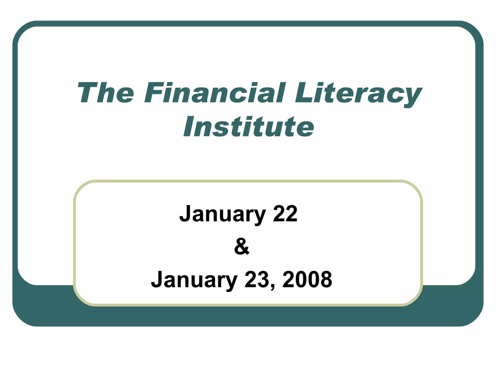 The document discusses materials from the Financial Literacy Institute that aim to increase financial literacy among students. It describes lessons and themes covered in the Financial Fitness for Life curriculum, including the economic way of thinking and decision making. Examples are provided to illustrate key concepts like incentives, trade, and consequences of choices. Economist jokes and anecdotes are also included.