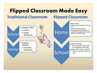 The flipped classroom model transforms traditional education by delivering instruction outside of class and utilizing class time for engagement and interactive learning activities. It emphasizes increased student responsibility, collaborative work, and critical thinking, while focusing on real-world application of knowledge. The approach is not solely about online videos, but rather fostering an environment where students actively participate and learn together with the guidance of their teacher.