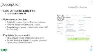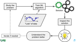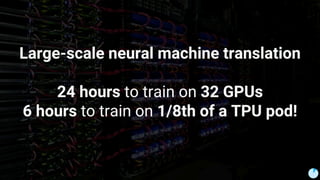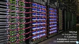 The document discusses the evolution and features of TensorFlow, an open-source software library developed by Google for machine learning. It covers various aspects such as types of machine learning, deep learning advancements, TensorFlow's architecture, API development, and the introduction of features like TensorFlow Serving and eager execution. The document also touches on market trends and the growing landscape of deep learning services.