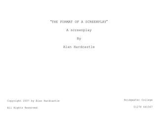 2) The key elements of a screenplay are the slugline, action, character names, and dialogue. A slugline indicates interior or exterior location and time. Action describes what is happening visually. Character names appear in all caps above dialogue.