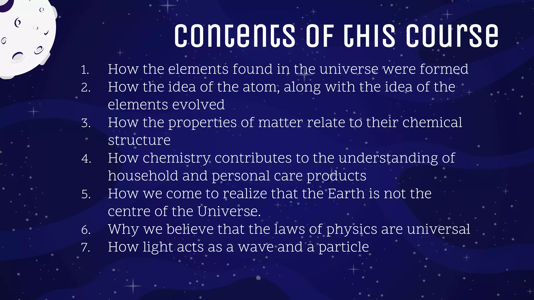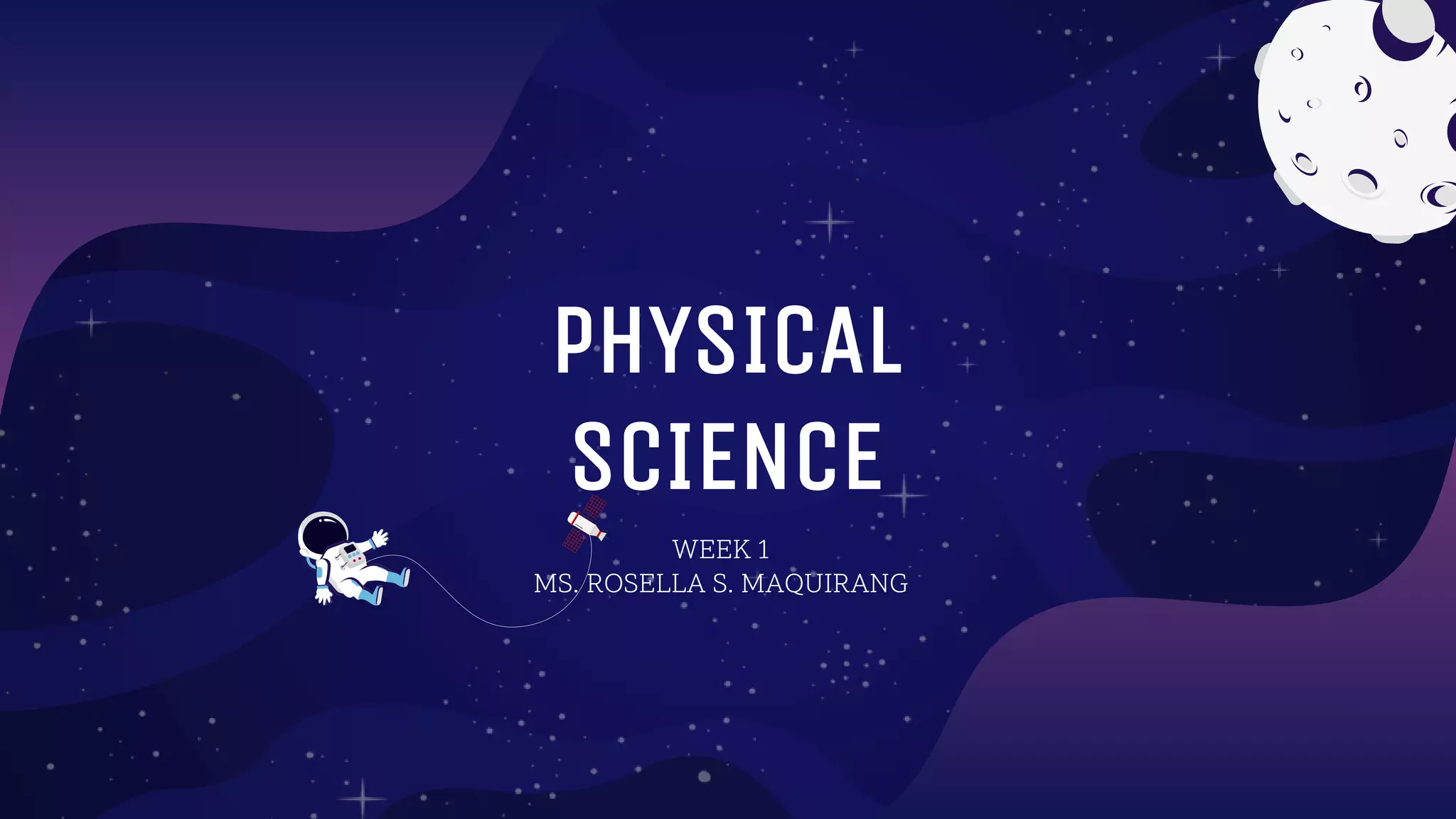 This document provides an overview of the topics to be covered in a physical science course in week 1, including: the formation of elements in the universe through nucleosynthesis; the evolution of ideas about atoms and the elements; how the properties of matter relate to chemical structure; chemistry's role in understanding household products; realizing the Earth is not the center of the universe; why physics laws are believed to be universal; and light acting as both a wave and particle. It further discusses the big bang theory of the universe's formation from an enormous amount of energy packed into a very small, hot, and dense space that then rapidly expanded.