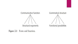 The document discusses the impact of globalization on English language teaching and the principles that guide materials and methods used in the classroom. It outlines various types of syllabi, emphasizing the need for context-specific curriculum designs tailored to learners' backgrounds, objectives, and the socio-cultural environment. Furthermore, it addresses the evolving nature of communicative language teaching and the importance of adapting to individual learner differences in order to enhance language acquisition.