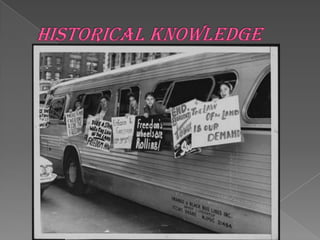 Freedom riders were civil rights activists who rode interstate buses in the Southern United States in 1961 to challenge segregation in public transportation. The Freedom Riders, both black and white, intentionally sat in integrated seating and visited "white only" facilities to test if bus terminals were desegregating. When the Freedom Riders reached Anniston, Alabama, one bus was firebombed and its riders beaten by a mob. In Birmingham, another mob severely beat the riders with pipes and bats after dragging them from the bus. Despite the violence, over a thousand people participated in Freedom Rides over the next six months to end bus segregation across the South.