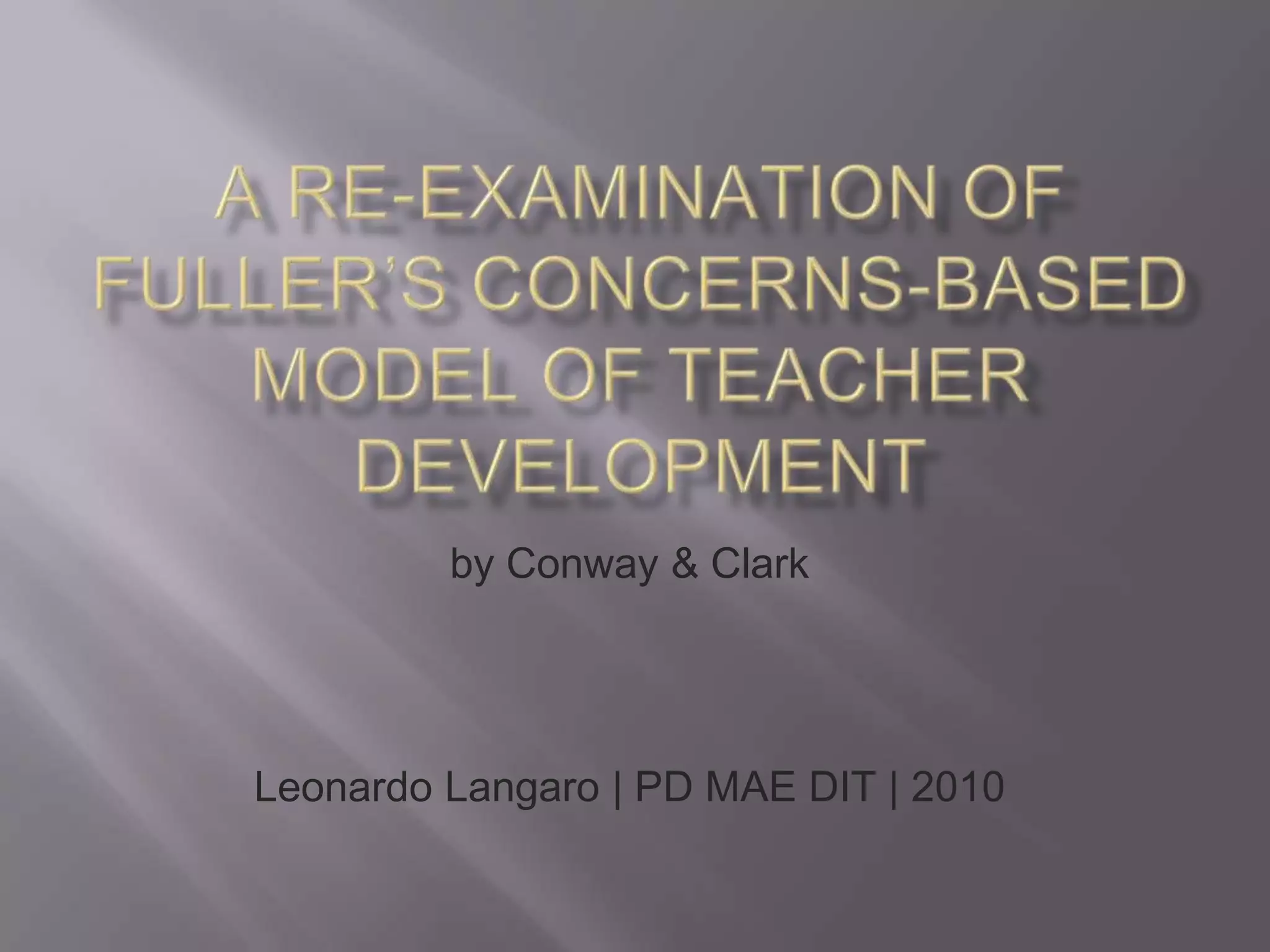 The document discusses Fuller's model of teacher development, which proposes that teachers progress through stages focused on their concerns about themselves, tasks/situations, and impact on students. It notes that the model emphasizes personal development over professional role and prioritizes resolving technical concerns over complex pedagogical issues. However, it also suggests the model promotes reflection and understanding of oneself as a teacher if both hopes and fears are addressed. Overall, the model provides insight into how teachers develop professionally over time through addressing inward-facing concerns.