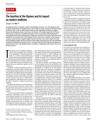 The thymus, once thought to have no significant function, plays a crucial role in the development of the immune system by producing T lymphocytes and ensuring they can distinguish between self and non-self antigens. Neonatal thymectomy in mice revealed that the thymus is essential for proper immune responses and T cell development, impacting the understanding of autoimmunity, immunodeficiency, and cancer therapies. This revelation has led to a reevaluation of various immune phenomena and underscored the importance of T and B cell interactions in immunology and medicine.
