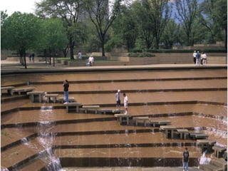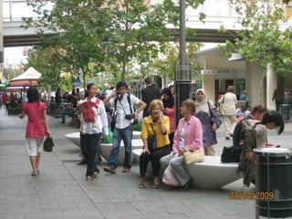 The document discusses the functional dimension of urban design and identifies five primary needs that people seek to satisfy in public spaces: comfort, relaxation, passive engagement, active engagement, and discovery. It also examines the social use of public spaces and notes that the most sociable spaces have features like a central location, being accessible from streets, being level with sidewalks, and having places to sit.