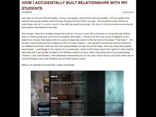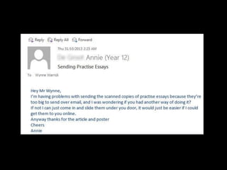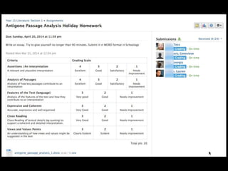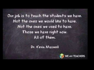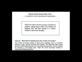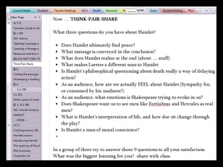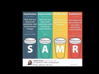 The document discusses the significance of blended learning in enhancing classroom experiences and emphasizes the role of effective teaching and feedback in student learning. It highlights the need for teachers to adapt to new technologies and methodologies, encouraging digital engagement and higher-order thinking. The document also provides resources and suggestions for teachers to re-envision their roles and the work of students in a modern learning environment.