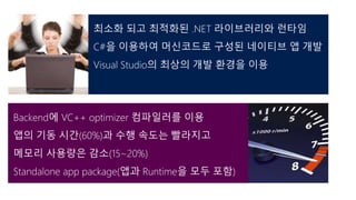 CLR runtim도 최적화 하였다. MRt100.dll minimum runtime static compile global 분석, global optimizatio을 수행, refactored and optimized libraries frame refactored and again optimized to make sure that app runs faster,