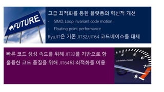 • Visual C++ 컴파일러 Optimizer를 사용 • JIT 컴파일러는 신속히 작업을 완료해야 함.
