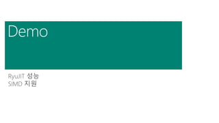 마지막으로 RyuJIT은 차세대 JIT 컴파일러 입니다. 기존의 32bits/64bits JIT 컴파일러는 이제 RyuJIT으로 모두 수렵되고, 차기 JIT 컴파일러는 모두 RyuJIT의 code base를 기반으로 발전이 이루어질 것입니다.