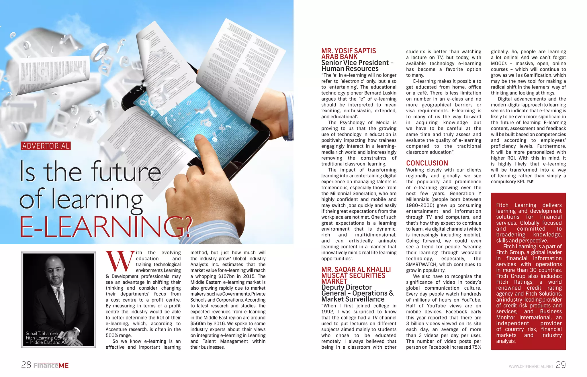 The document discusses the significant growth of e-learning, predicting the market will reach $107 billion in 2015 and $560 million in the Middle East by 2016. Industry experts emphasize the importance of transforming e-learning into an engaging experience to meet the expectations of the millennial workforce. The future of learning is projected to be increasingly digital, personalized, and competency-based, with advancements in technology enhancing both accessibility and interaction.