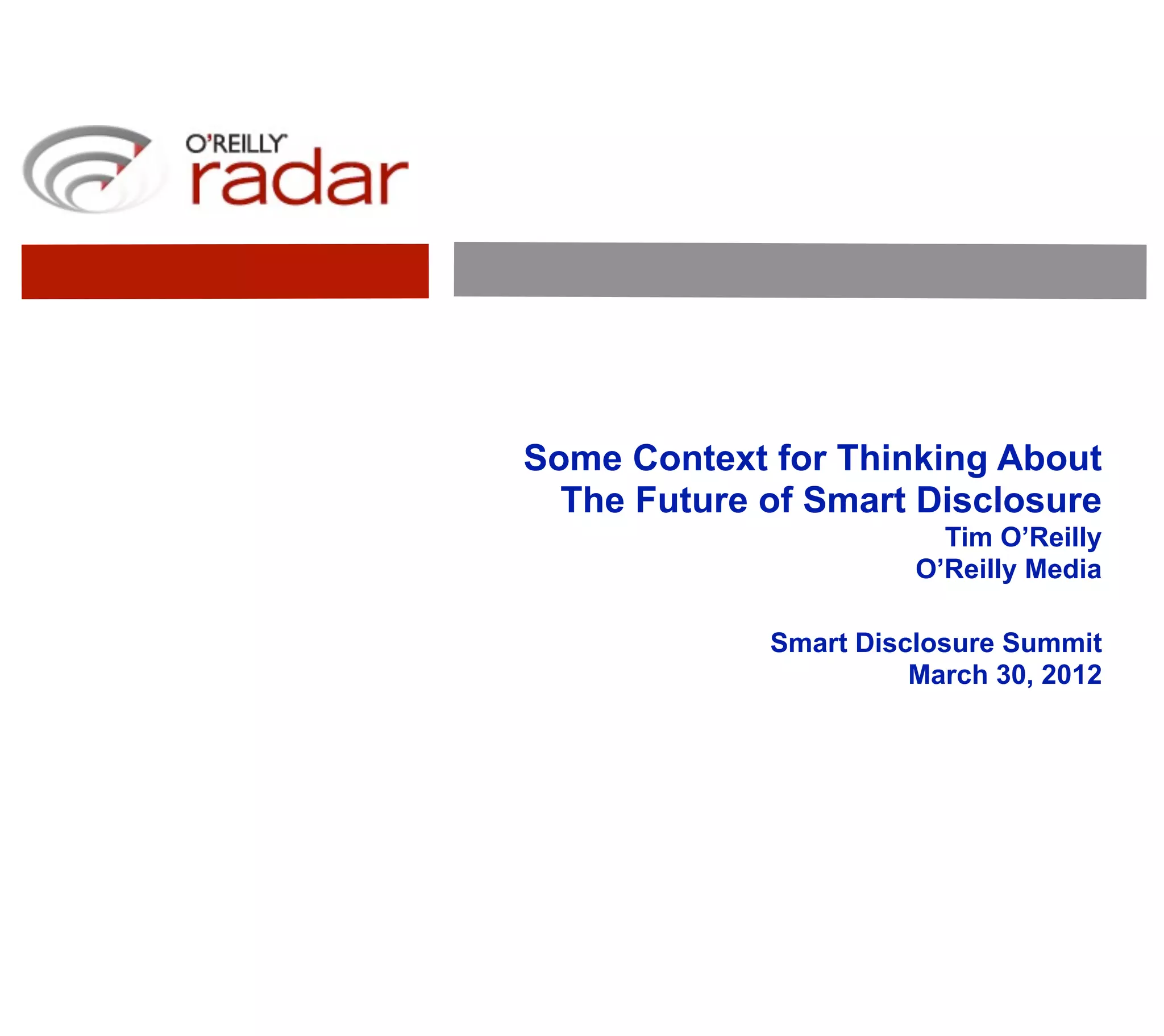 The document discusses the implications of Moore's Law on government technology and the evolution of smart disclosure, emphasizing the need for governments to adapt and innovate more rapidly. It highlights the importance of open data, real-time information, and algorithmic regulation in creating effective public platforms and addressing future challenges. The author advocates for a proactive regulatory approach that focuses on outcomes rather than mere data acquisition.