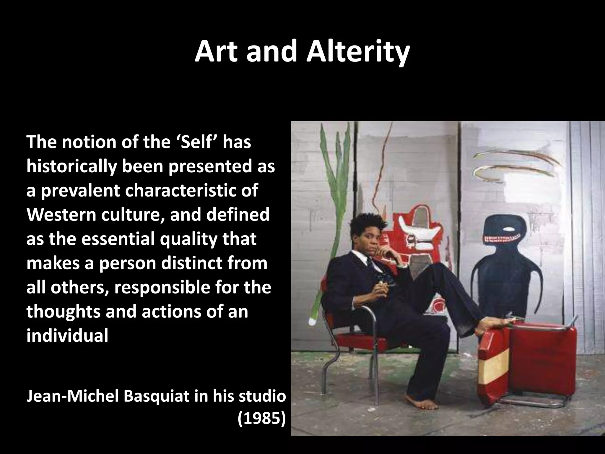 This document discusses the concept of alterity, or otherness, from an art historical perspective. It begins by defining alterity as how Western culture historically viewed the self in contrast to others. It then explores how postmodernism emphasizes relationships between self and other through figures defined by terms like alterity, absence, and uncertainty. The document examines how anthropology and feminist discourses have discussed gendered and racialized others. It also analyzes how artworks have addressed themes of doubles, doppelgängers, virtual worlds, and technologies in relation to notions of self and alterity.
