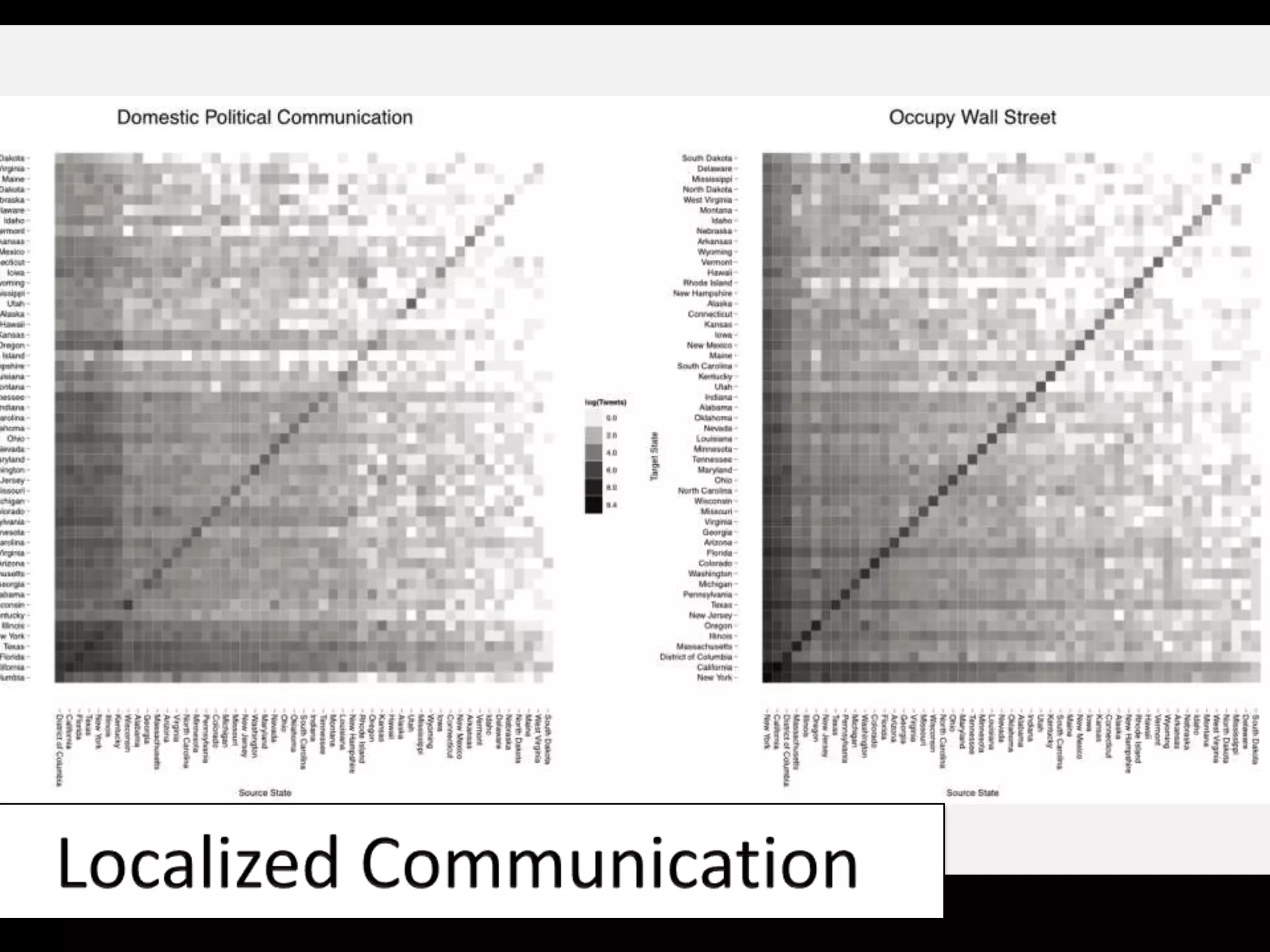 The document analyzes the geospatial characteristics of the Occupy Wall Street movement's communication network, focusing on how protest information disseminates across decentralized online platforms. Findings suggest that most discourse occurs locally, particularly from major protest locations like New York, D.C., and California, with high-profile areas acting as information hubs. The study highlights the significance of proximity to events in shaping communication patterns and suggests avenues for further research on social movements.