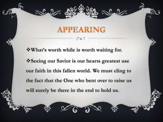 3) Believers are called to follow Christ, worship God, and share the gospel with others so that more may experience God's grace and salvation. The gospel transforms lives and gives hope of eternal life in heaven.