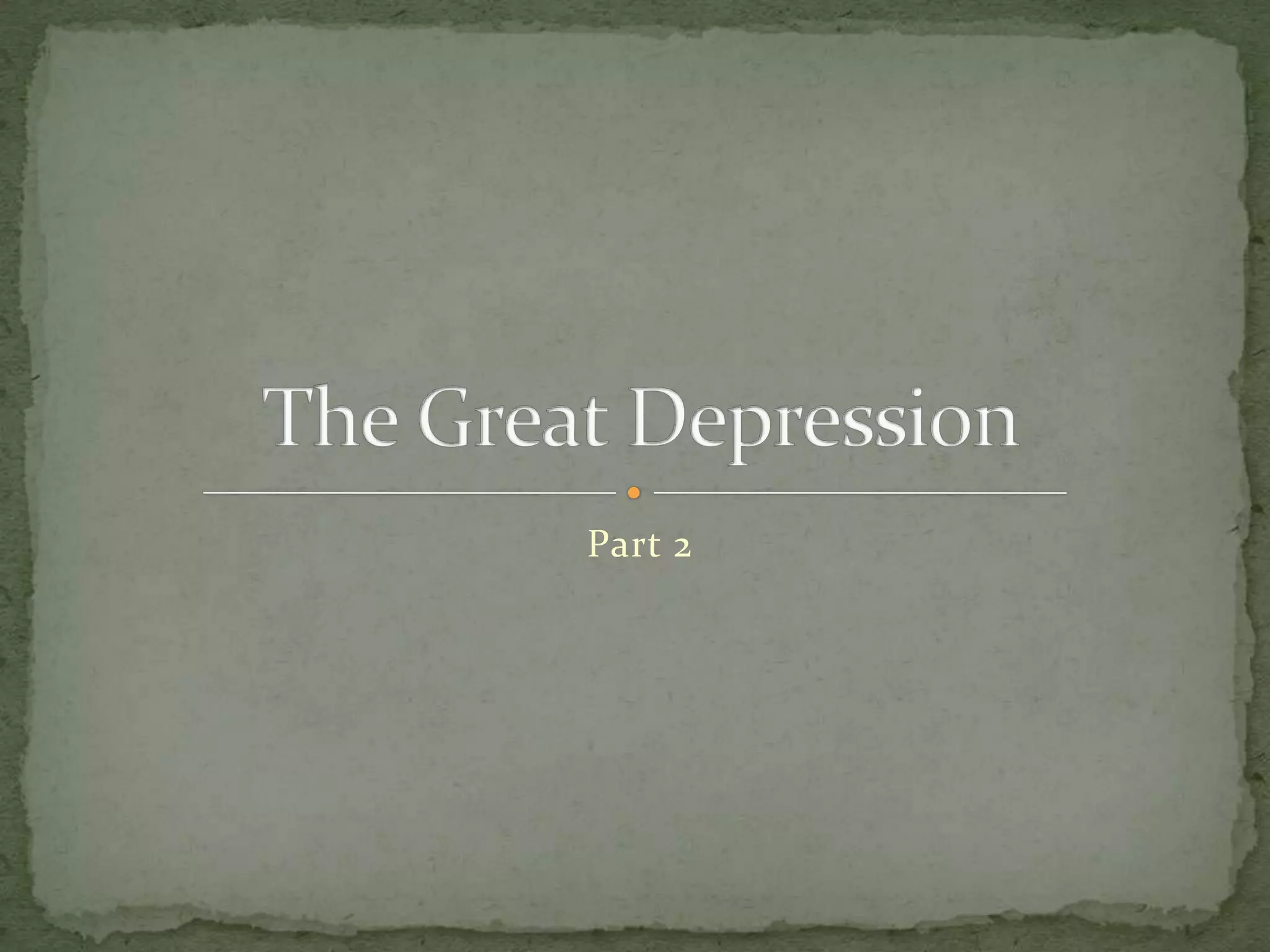 The Great Depression began with the 1929 stock market crash in the United States and spread worldwide. Unemployment rose sharply in Western nations as industrial production and GDP declined. The economic crisis weakened democracies and led some countries to elect radical leaders who increased government intervention in the economy. Franklin D. Roosevelt was elected US president in 1932 and established New Deal programs that created jobs and unemployment insurance to help the American people and lead the US economy out of the Depression.