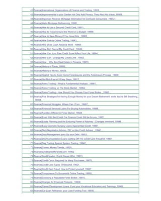The document lists a wide array of popular financial topics and guides, including mortgage options, investing strategies, and credit management advice. It features documents covering different aspects of finance, such as retirement planning, debt management, and forex trading. Overall, it serves as a resource for individuals seeking to improve their financial literacy and decision-making.