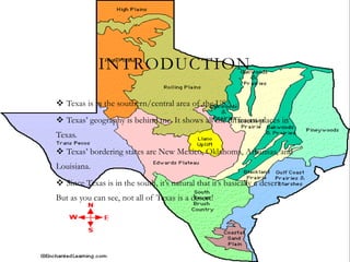 Texas has a diverse geography and economy. It borders New Mexico, Oklahoma, Arkansas, and Louisiana, and contains deserts as well as other landscapes. Texas has a proud history and was admitted as the 28th US state in 1845. The state's economy relies heavily on fossil fuels and other natural resources. With over 26 million residents, Texas has a strong culture of pride in its history and people. The state capital is Austin, and major cities include Houston, San Antonio, Dallas, and Fort Worth.