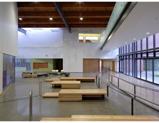 The document discusses sustainable strategies for performing arts facilities that go beyond LEED certification. It provides several case studies of performing arts centers that implemented sustainable best practices in areas like indoor environmental quality, materials selection, water and energy conservation. Key strategies included natural ventilation, displacement ventilation, radiant heating/cooling, waterless urinals, energy efficient equipment, construction waste diversion, and use of low-VOC and recycled materials. The case studies demonstrate how facilities tailored their sustainability approaches based on factors like climate, site conditions, and user needs.